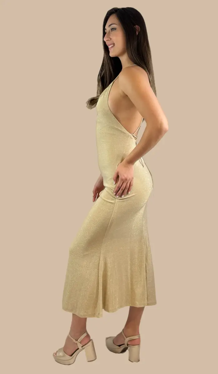 -Vestido midi dorado
