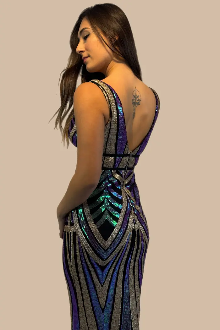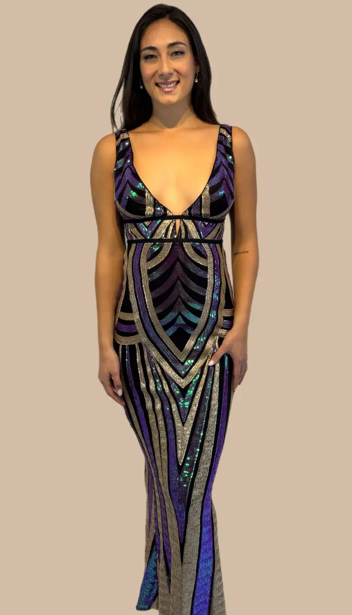 -Vestido multicolores con escote pronunciado, espalda descubierta , corte sirena.