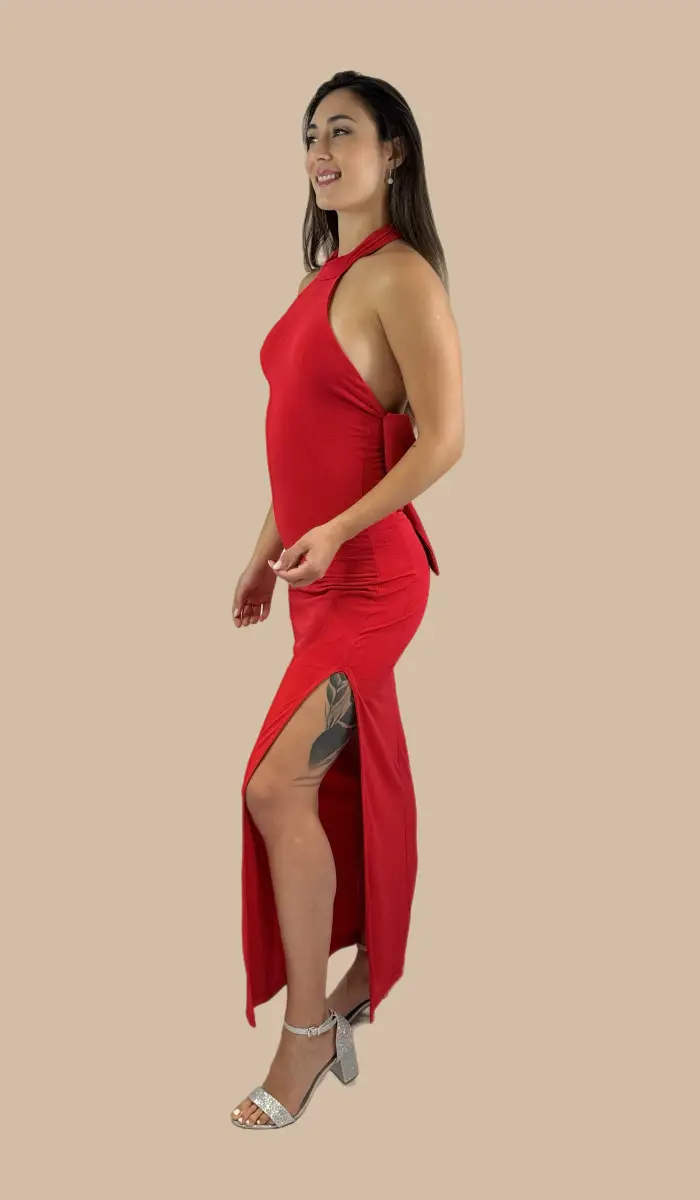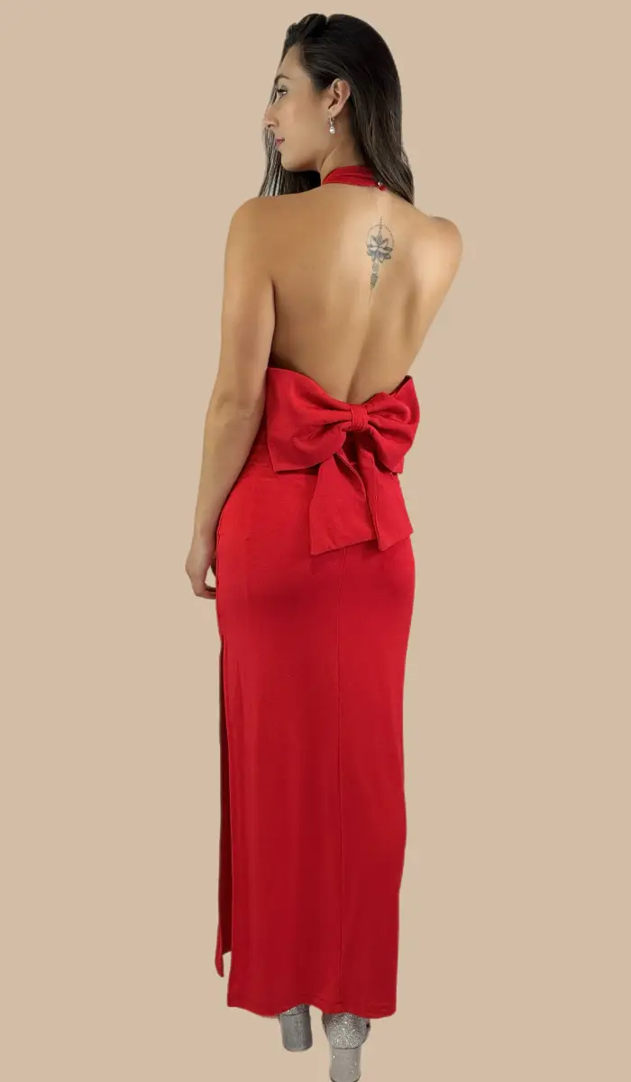-Vestido rojo con lazo en la espalda