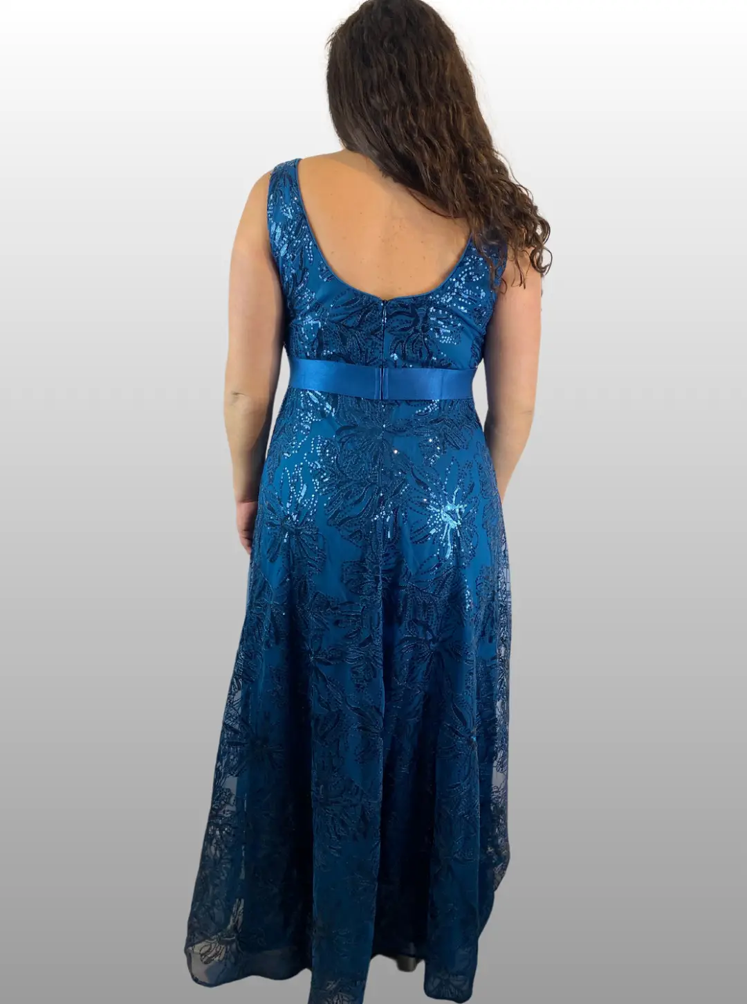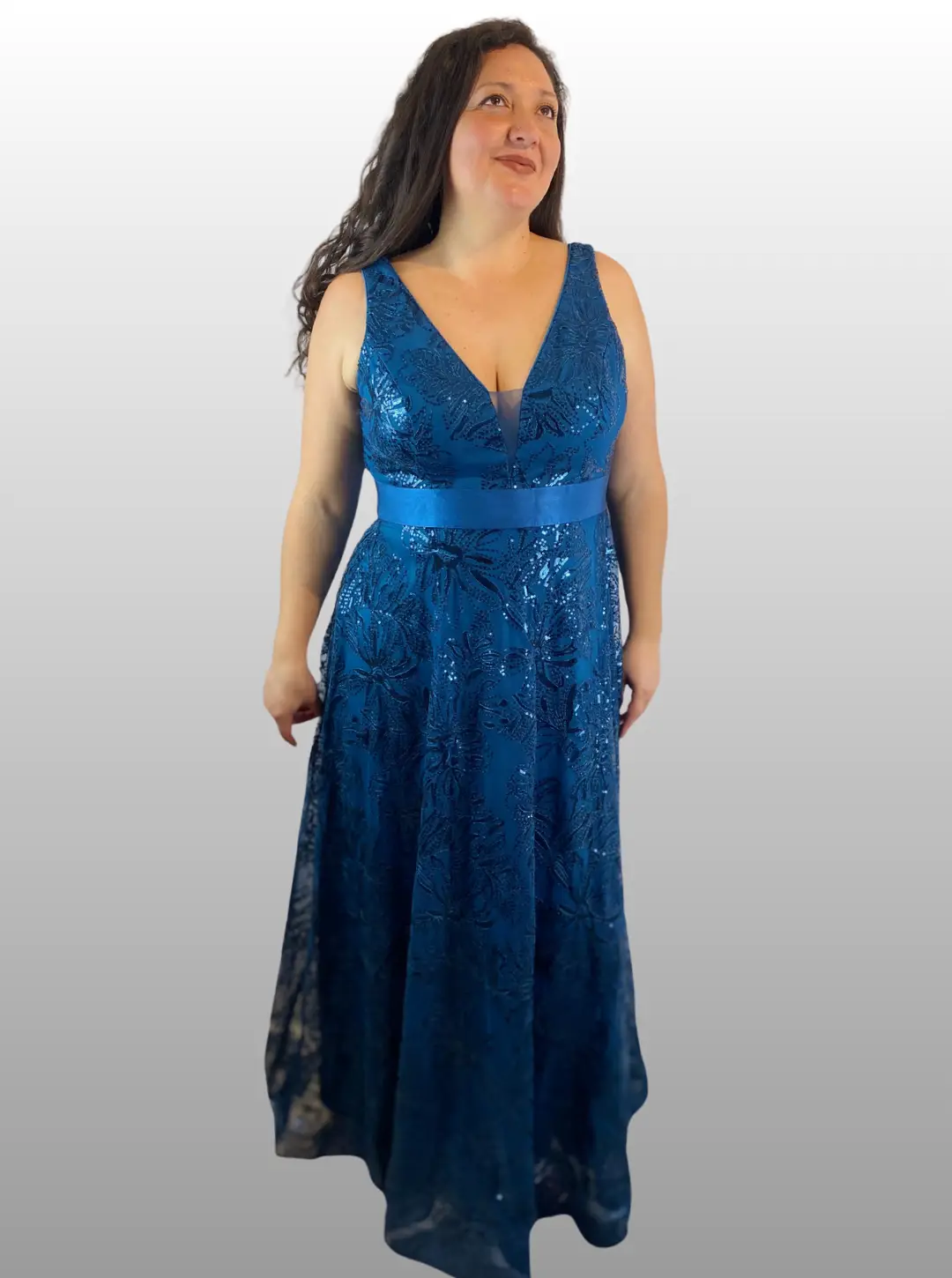 –Vestido formal , con cuello en V ajustado, sin mangas, con bordado de lentejuelas.