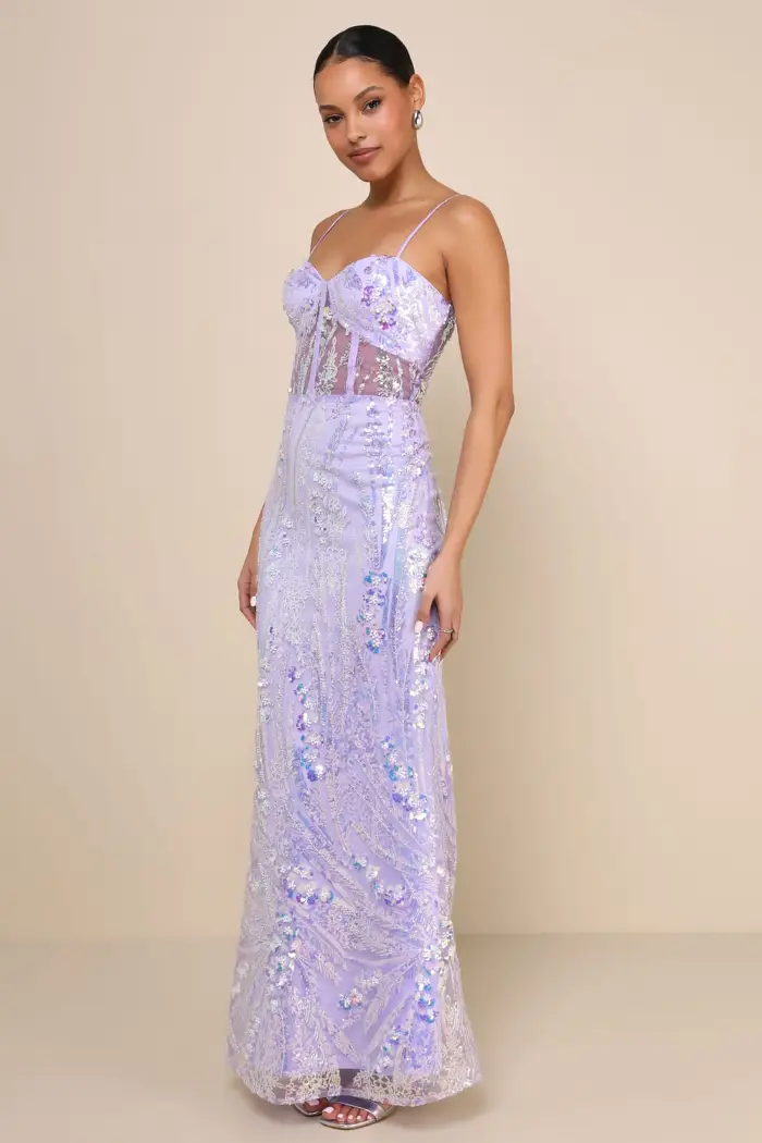 -Vestido lavanda Tipo Bustier de lentejuelas iridiscentes